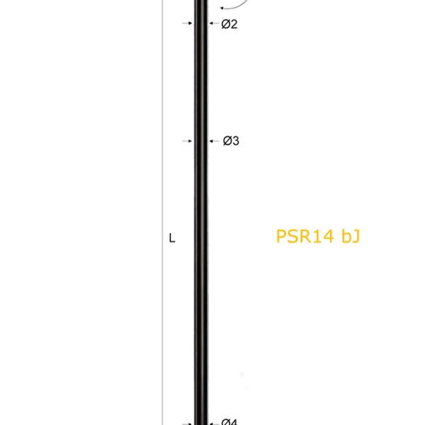 Pillar Spoke – RADIO INOX REDONDO REFORZADO, ACODADO NEGRO | Reinforced Round, J-Bend Black Inox Spoke. PSR14. 2,2-2,0mm. 80-182mm