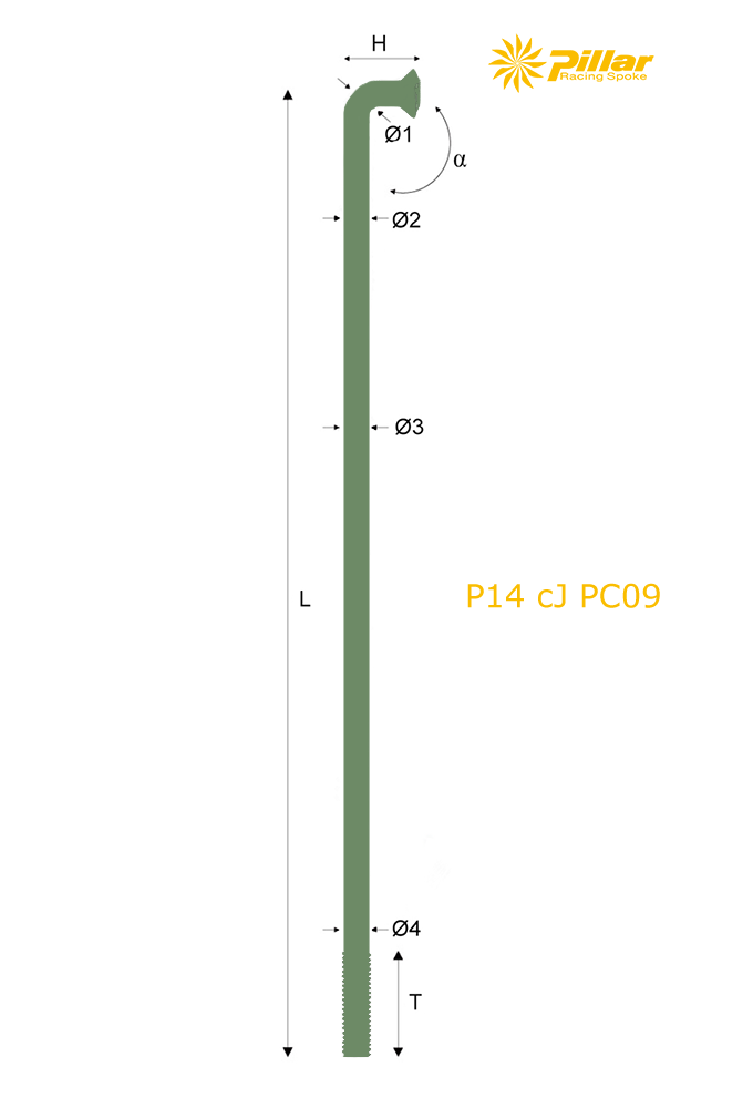 Pillar Spoke – RADIO INOX REDONDO, ACODADO VERDE OLIVA | J-Bend Round, Olive Green Inox Spoke. P14, Color PC-09. 2,0mm. 80-280mm.