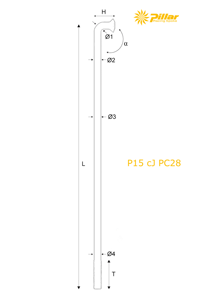 Pillar Spoke – RADIO INOX REDONDO, ACODADO BLANCO | J-Bend Round, White Inox Spoke. P15, Color PC-28. 1,8mm. 80-300mm.