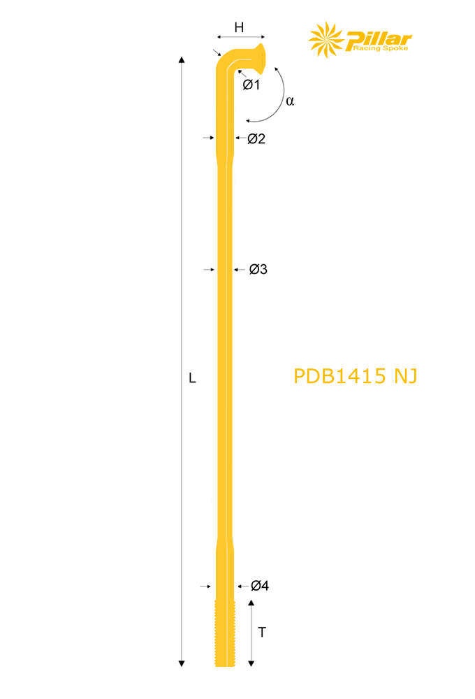Pillar Spoke – RADIO INOX REDONDO CONIFICADO DOBLE, ACODADO ORO | Double-Butted J-Bend Round, Gold Inox Spoke. PDB1415, Color Ti. 2,0-1,8-2,0mm. 262mm.